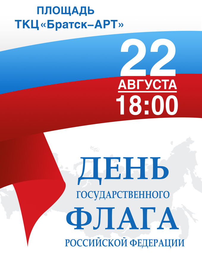 В этот торжественный день на площади ТКЦ «Братск-АРТ» пройдёт праздничный концерт, посвящённый Дню флага. На сцене выступят творческие коллективы и солисты учреждения, которые с помощью песен, танцев и ярких эмоций воздадут дань уважения нашему знамени.