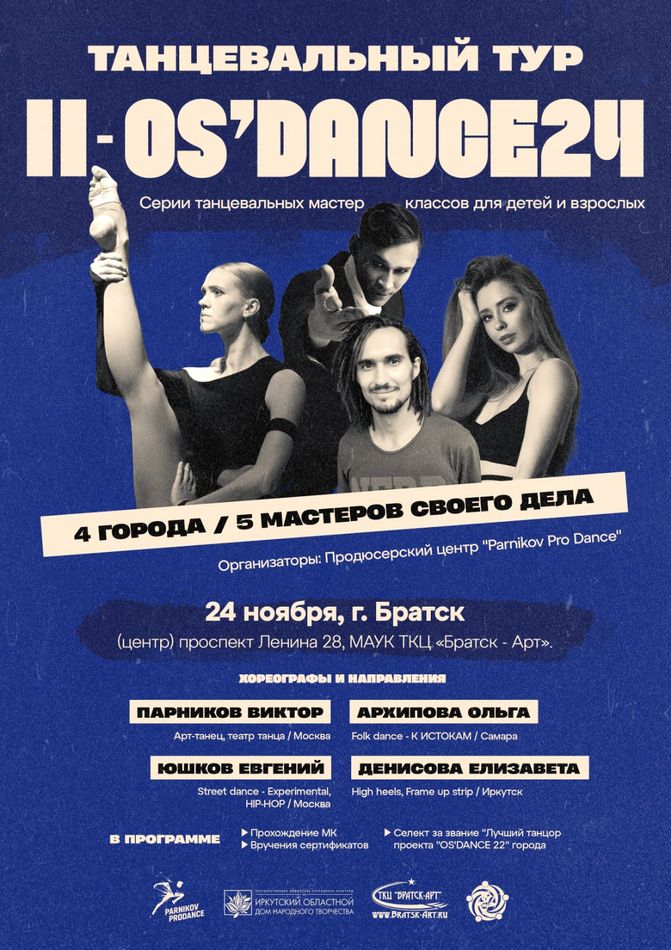 ПРИГЛАШАЕМ КОЛЛЕКТИВЫ принять участие во 2-м ТАНЦЕВАЛЬНОМ ТУРЕ «OS`DANCE 2024» - это серия мастер классов для детей и взрослых, по самым востребованным направлениям танца.