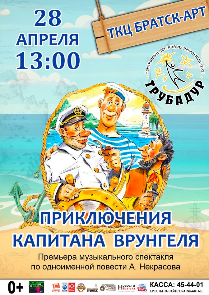 Образцовый коллектив «Детский музыкальный театр «Трубадур» приглашает зрителей в увлекательное морское путешествие! На сцене оживёт весёлая и невероятная история о самом знаменитом яхтсмене — капитане Врунгеле.