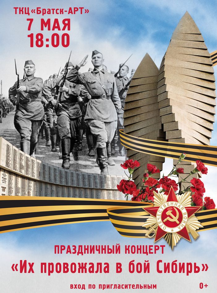 7 мая в ТКЦ «Братск-АРТ» состоится концерт, посвящённый Дню Победы. Это день, который объединяет поколения, день памяти, гордости и безграничной благодарности героям, подарившим нам мирное небо.