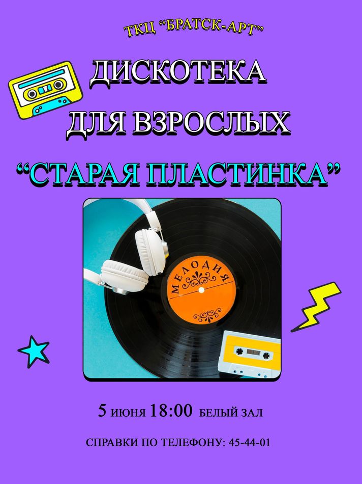 Приглашаем вас окунуться в атмосферу прошлых лет на дискотеке, где будут звучать ваши любимые хиты! Это мероприятие подарит массу позитивных эмоций и зарядит энергией на весь день.