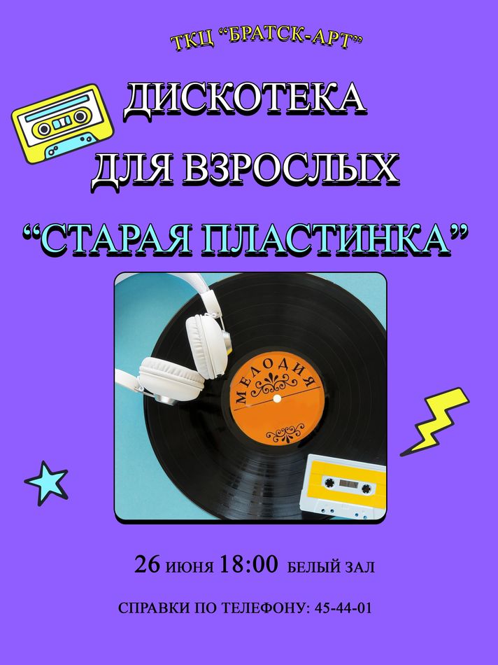Приглашаем вас окунуться в атмосферу прошлых лет на дискотеке, где будут звучать ваши любимые хиты! Это мероприятие подарит массу позитивных эмоций и зарядит энергией на весь день.
