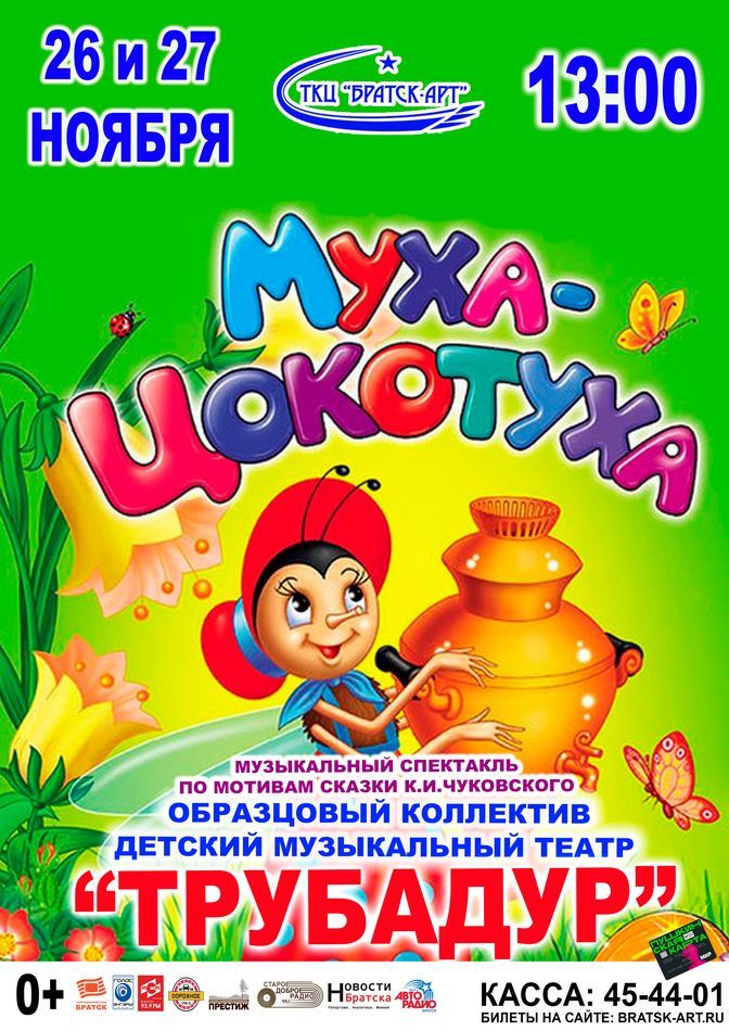 Образцовый коллектив «Детский музыкальный театр “Трубадур”» приглашает на премьеру младшего состава в музыкальном спектакле «Муха-Цокотуха» — по мотивам знаменитой сказки Корнея Чуковского!