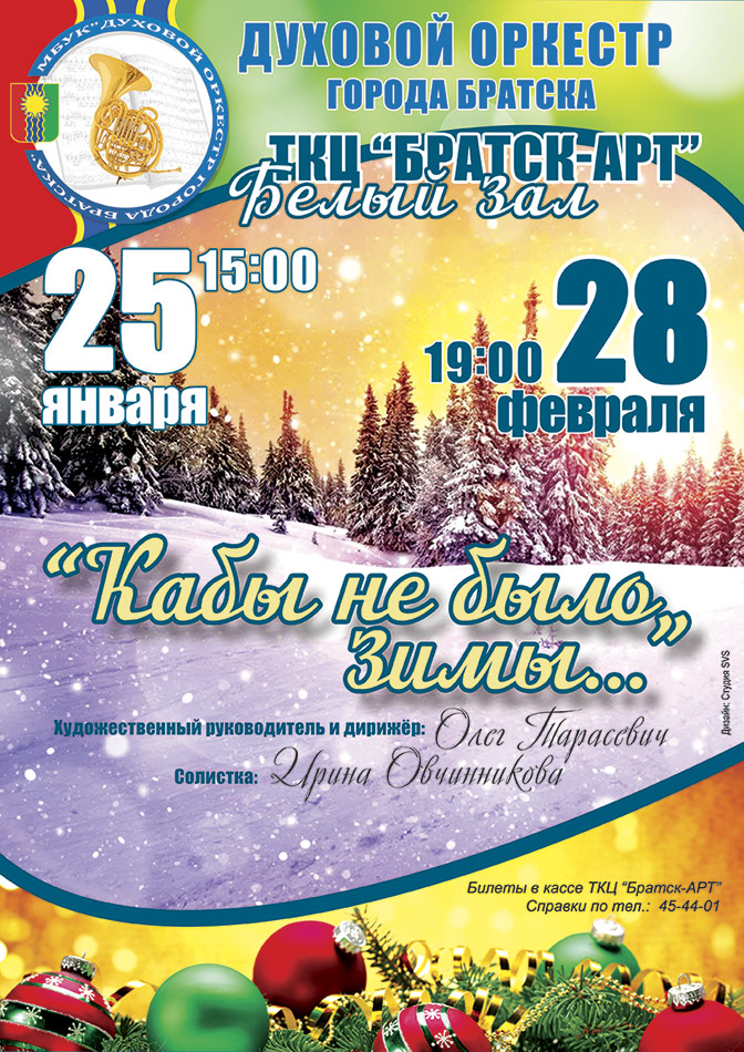 «Духовой оркестр города Братска» приглашает на встречу с прекрасной музыкой и представляет концертную программу: «Кабы не было» Зимы…