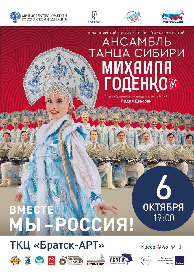 Красноярский государственный академический ансамбль танца Сибири имени Михаила Годенко – один из российских и сибирских культурных брендов, который знают и ценят не только в России, но и за рубежом. Он входит в число лучших профессиональных ансамблей народного танца России. Коллектив — лауреат многих международных конкурсов, посетил с гастролями более чем 70 стран мира, провёл более 5 000 концертов на крупнейших сценических площадках. Ансамбль был участником многих масштабных проектов в стране и за рубежом — таких как Олимпийские игры в Москве, Дни культуры СССР в разных странах, Фестивали молодёжи и студентов и многие другие. История «Ансамбля песни и танца» начинается с 1946 года, но в 1960 году хореография в репертуаре стала основным жанром коллектива, а в 1963 году ансамбль получил своё современное название «Красноярский государственный ансамбль танца Сибири» и стал визитной карточкой Красноярского края. С 1963 по 1991 гг. бессменным художественным руководителем был народный артист СССР, лауреат Государственной премии СССР, Герой Социалистического Труда Михаил Семёнович Годенко, чьё имя коллектив носит с 1992 года.