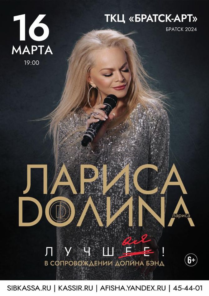 Лариса Долина представляет свою новую программу «Лучшее», в которую войдут, как полюбившиеся всеми хиты («Погода в доме», «3 розы», «Льдинка», «Половинка»), так и абсолютные премьеры!!!