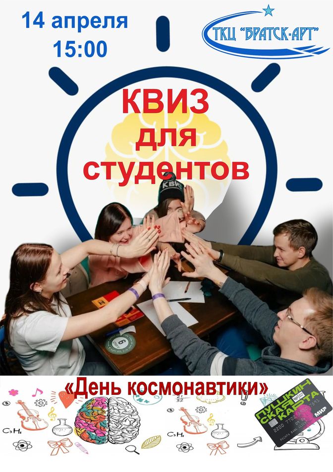Приглашаем команды отправиться в космическое путешествие, полное загадок, звёздных фактов и героических страниц истории. Вас ждёт вечер, посвящённый Дню космонавтики и тем, кто когда-то сказал: «Поехали!»
