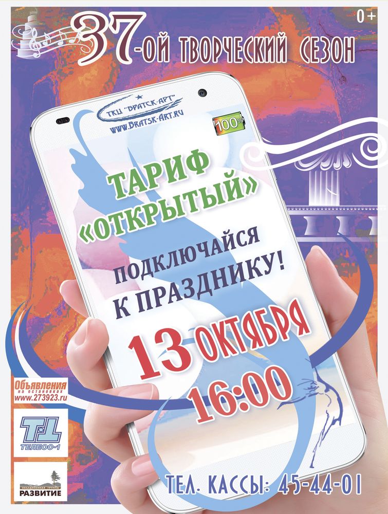 Вас ждет праздничный концерт, море позитивных эмоций, хорошее настроение, а также традиционный розыгрыш «СЧАСТЛИВОГО БИЛЕТА», который дает право посещать все мероприятия ТКЦ «Братск-АРТ».