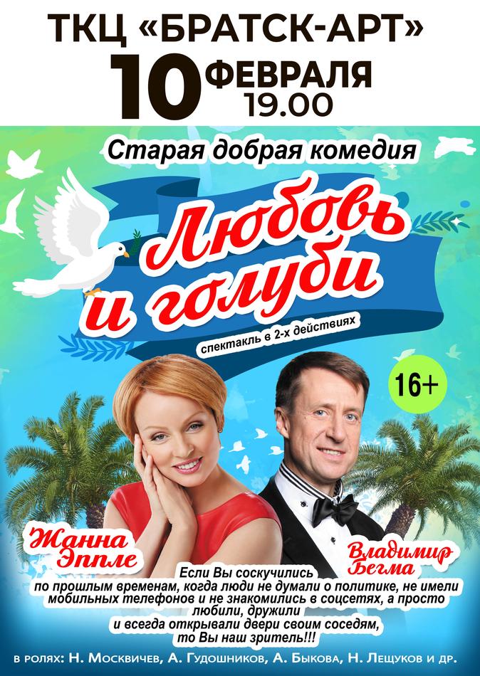 История простой сельской семьи Кузякиных, где отец семейства – Василий - страстно увлечен разведением голубей. Жизнь была спокойной и размеренной до одного случая, когда в жизни Васи появилась она - Раиса Захаровна – городская модница, взбалмошная и воодушевленная, светская львица. Их неожиданное знакомство переросло в курортный роман, а он, в свою очередь, повлек раскол в семействе Кузякиных. Были слезы, обиды, депрессия, чуть не закончившаяся драмой, но…жизнь расставляет все на свои места. Завораживающая лирическая комедия, не оставит равнодушным никого.