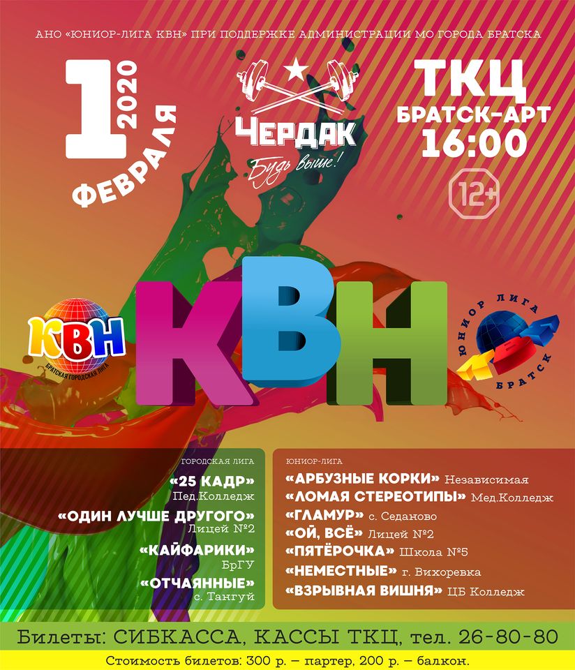 1 февраля 2020 года в 16.00 на сцене театрально-концертного центра «Братск-АРТ» самые веселые и находчивые команды города и района откроют новый сезон юмористических соревнований.