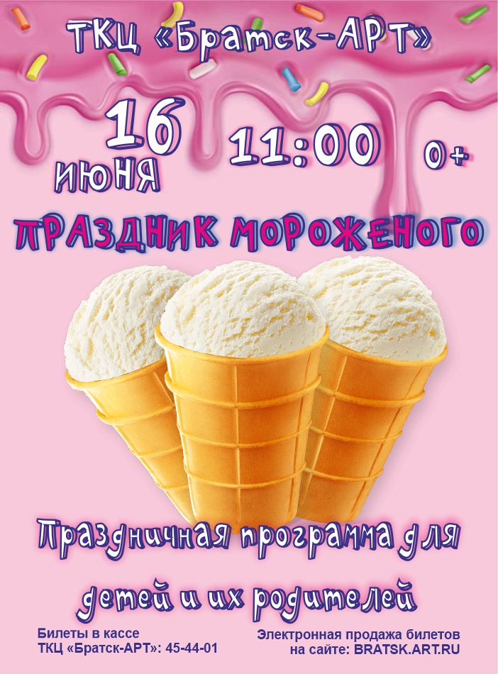 16 июня в 11:00 состоится праздничная программа для детей и их родителей - "Праздник мороженого". Это будет то событие, о котором дети будут вспоминать долгое время, ведь в это день случится много радости и веселья!
