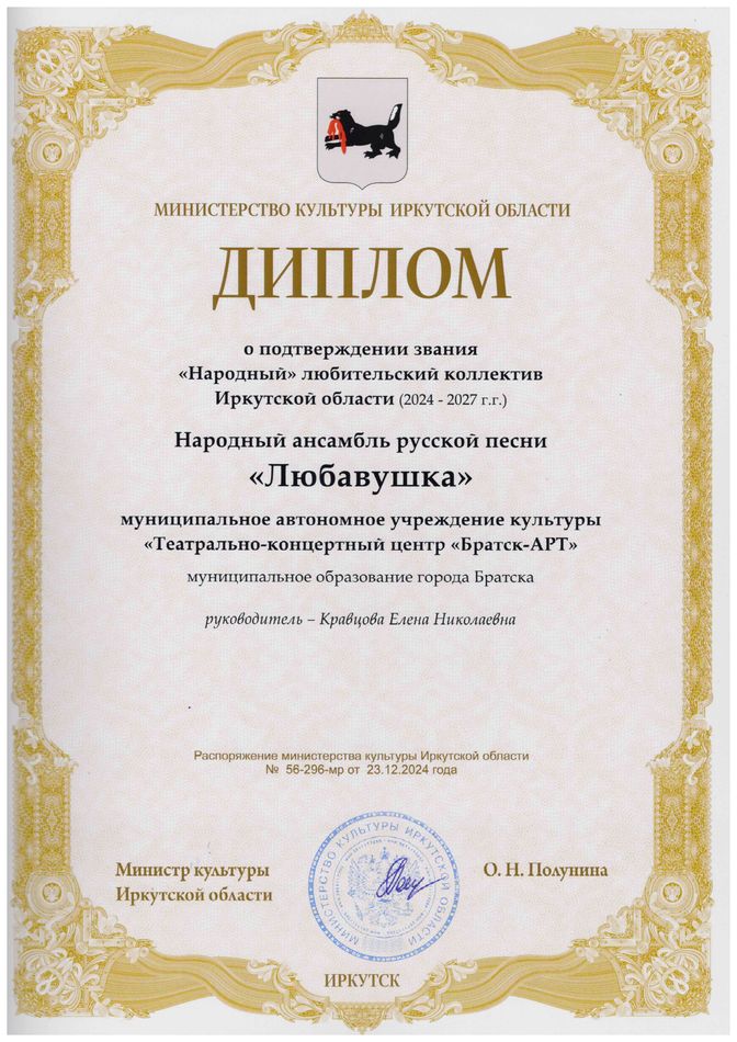 Полное название коллектива: Народный коллектив «Ансамбль русской песни «Любавушка»