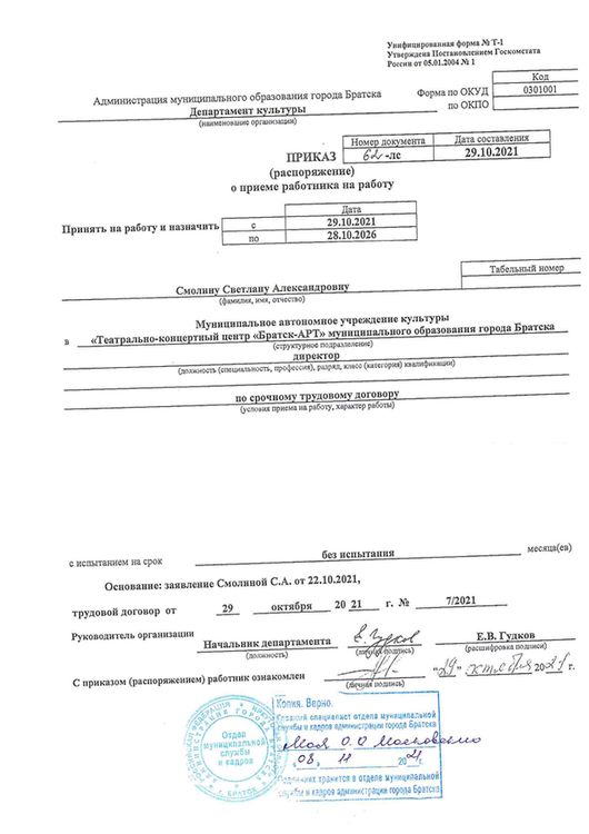Приказ о назначении руководителя