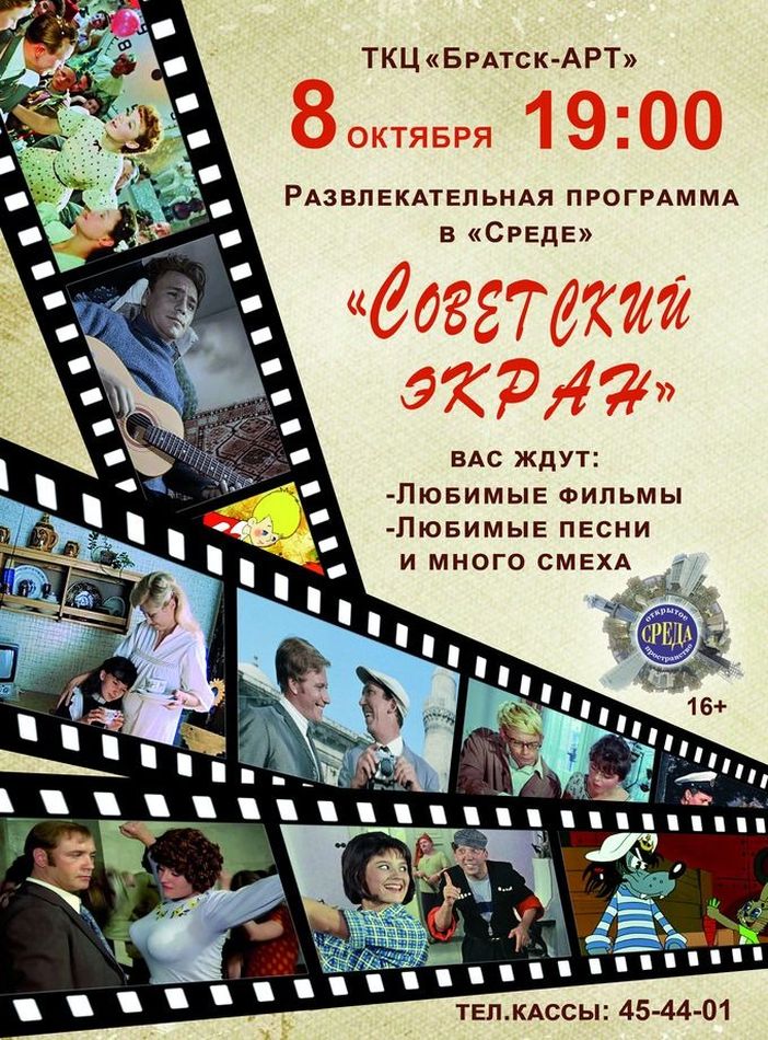 Клуб «Среда» собирает всех, кто скучает по доброму старому кино! Приглашаем вас на наш уютный вечерок «Советский экран»!